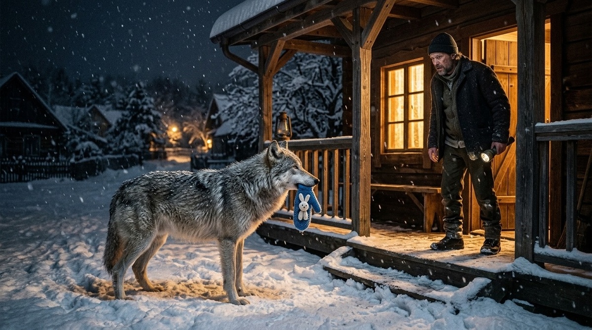 Не пёс, не помесь, не бродячая лайка. Настоящий, крупный, с жёсткой серой шерстью и узкой тёмной мордой. Под светом лампы снег на его спине казался серебряным. Волк не рычал и не скалился. Он смотрел прямо на Павла и что-то держал в зубах.