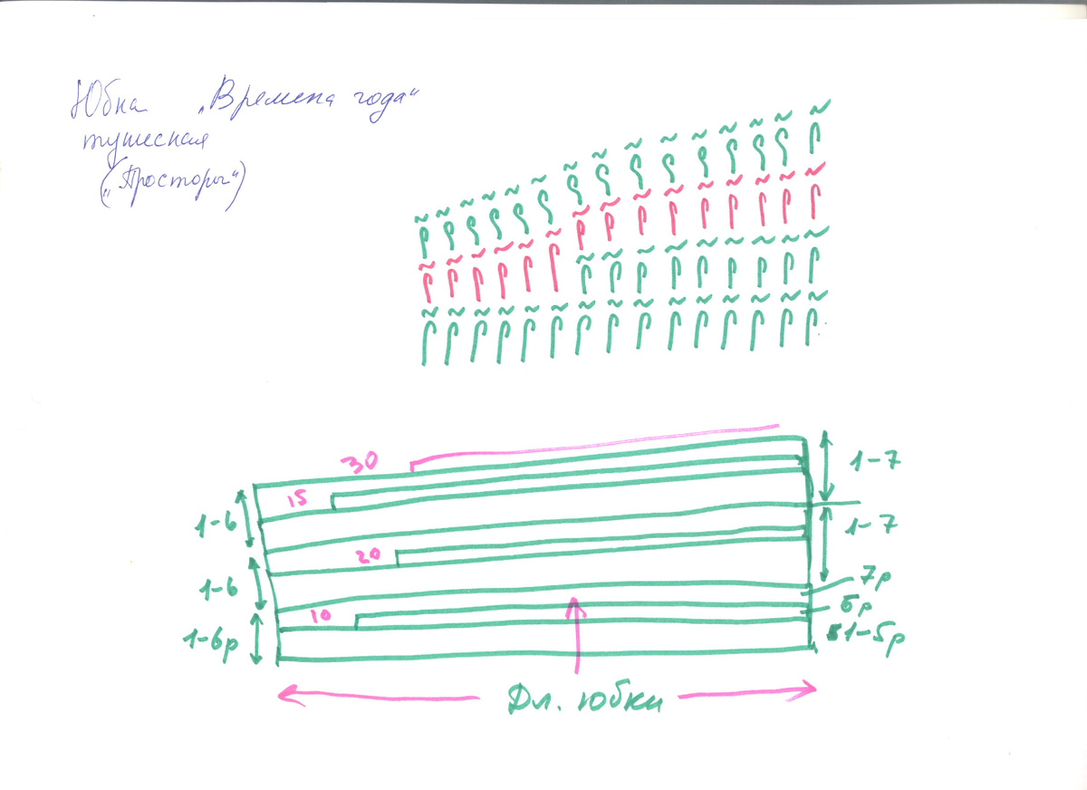 Для вязания юбки "Времена года" вам потребуется 550 - 600 гр. шерстяных ниток 400 м/ 100 гр.