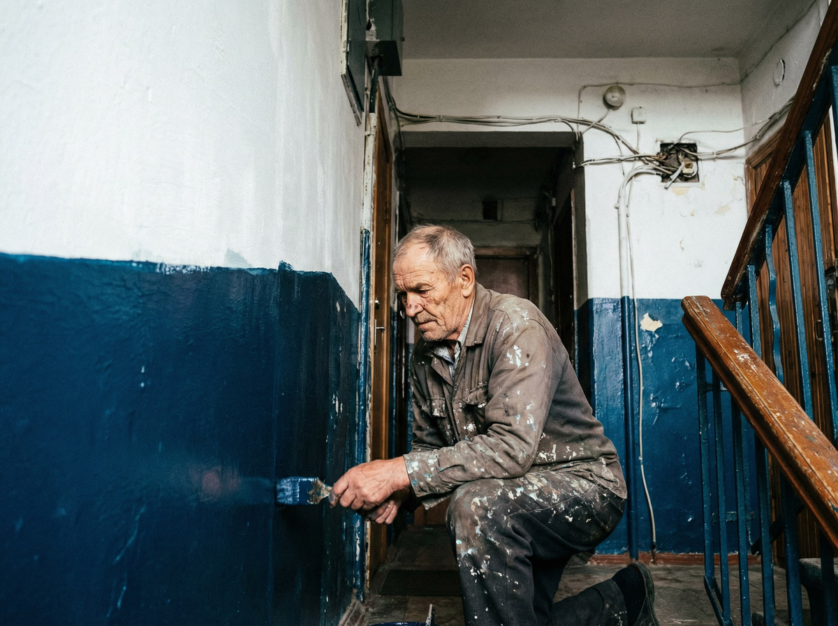 Заходишь в старый подъезд где-нибудь в спальном районе, и первое, что бросается в глаза — эта характерная синяя полоса. Она тянется по всему периметру, словно кто-то провел гигантской кистью ровно на уровне пояса и остановился. Выше — грязно-белая штукатурка, ниже — густой синий цвет, иногда зеленый, реже коричневый. Почему именно так? Почему не полностью? И главное — зачем вообще красили эти стены?