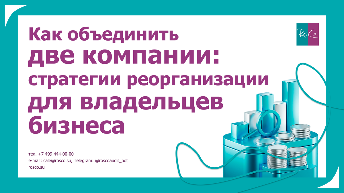 Основные «сценарии» для объединения компаний в России — реорганизация в форме слияния или присоединения. Процедуру регламентирует Гражданский кодекс РФ (ст. ст. 57-60) и Федеральный закон от 08.08.2001 г. № 129.