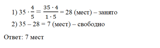 35 : 5 = 7 мест – одна часть, значит 7 мест – свободно