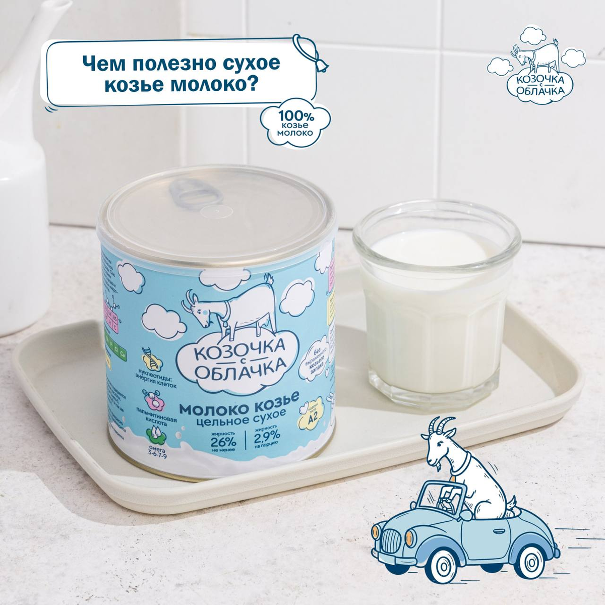 Его получают путём щадящего удаления влаги из свежего молока. Такой формат позволяет сохранить большую часть питательных веществ, при этом делает продукт удобным для хранения и использования. Чем полезно сухое козье молоко? Высокая усвояемость с низким аллергенным потенциалом Белок козьего молока представлен казеином типа А2, который легче переваривается и реже вызывает аллергические реакции. Козье молоко содержит все необходимые аминокислоты в отличие молока растительного происхождения. Лёгкое пищеварение Жировые глобулы в козьем молоке значительно меньше, чем в коровьем, поэтому ферментам легче их расщеплять. Козьи продукты не создают ощущение тяжести и их можно употреблять даже в вечернее время. Поддержка микробиома Козье молоко содержит в 4–6 раз больше олигосахаридов — природных пребиотиков, которые способствуют росту полезной микрофлоры кишечника. Функциональный состав В составе присутствуют жирные кислоты Омега-3, 6, 7 и 9 в идеальной пропорции, а также МСТ-кислоты — источник