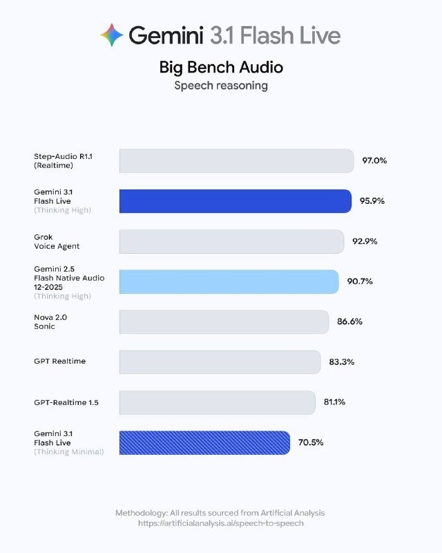 ⚡️ Google мощно апнул Gemini Live — голосовой помощник теперь почти топ по пониманию речи, обгоняя Grok и GPT