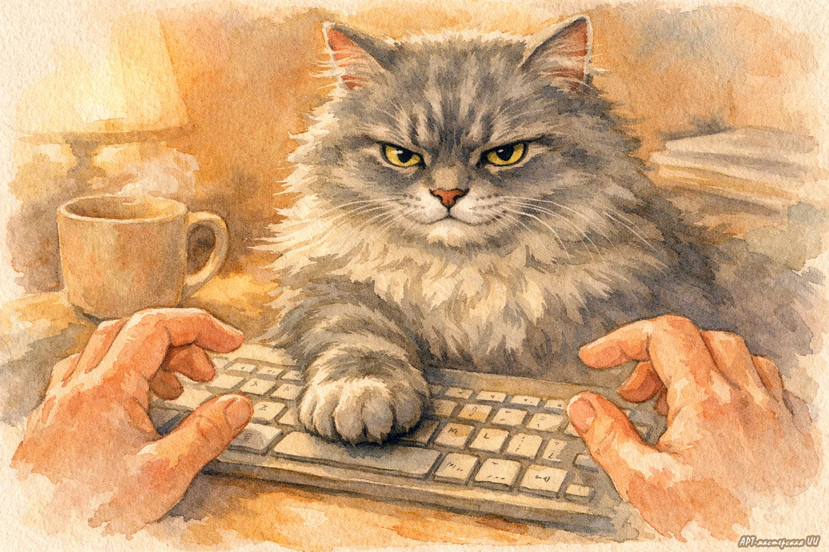 Не тот, который в домике в деревне, с пледом, печкой и заботливой семьёй. Нет. Это был его брат-близнец — городской, с характером потяжелее и взглядом, способным выключить свет в комнате без всяких выключателей. Он жил в квартире молодой пары. Люди эти были, в общем-то, хорошие. Даже слишком хорошие. Они кормили кота вовремя, иногда раньше времени, а иногда — просто потому что он посмотрел. Корм у него был лучший: не из пакетиков с подозрительным запахом, а из доставки, с такими названиями, что сам кот иногда задумывался, не слишком ли он избалован. Ему чесали за ухом. Ему уступали подушку. Ему разрешали ходить по столу — правда, с лёгким вздохом, но разрешали.