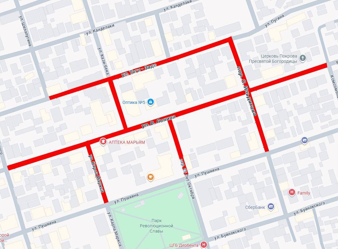 движение транспорта по улицам: ◼️Ленина - от переулка Красноармейская до переулка К. Маркса; ◼️по переулку С. Ильдатова - от улицы Ленина до улицы Пушкина; ◼️по переулку К.Маркса - от улицы Ленина до улицы Пушкина; ◼️по улице Таги-заде - от улицы Шелапугина до переулка С. Ильдатова.