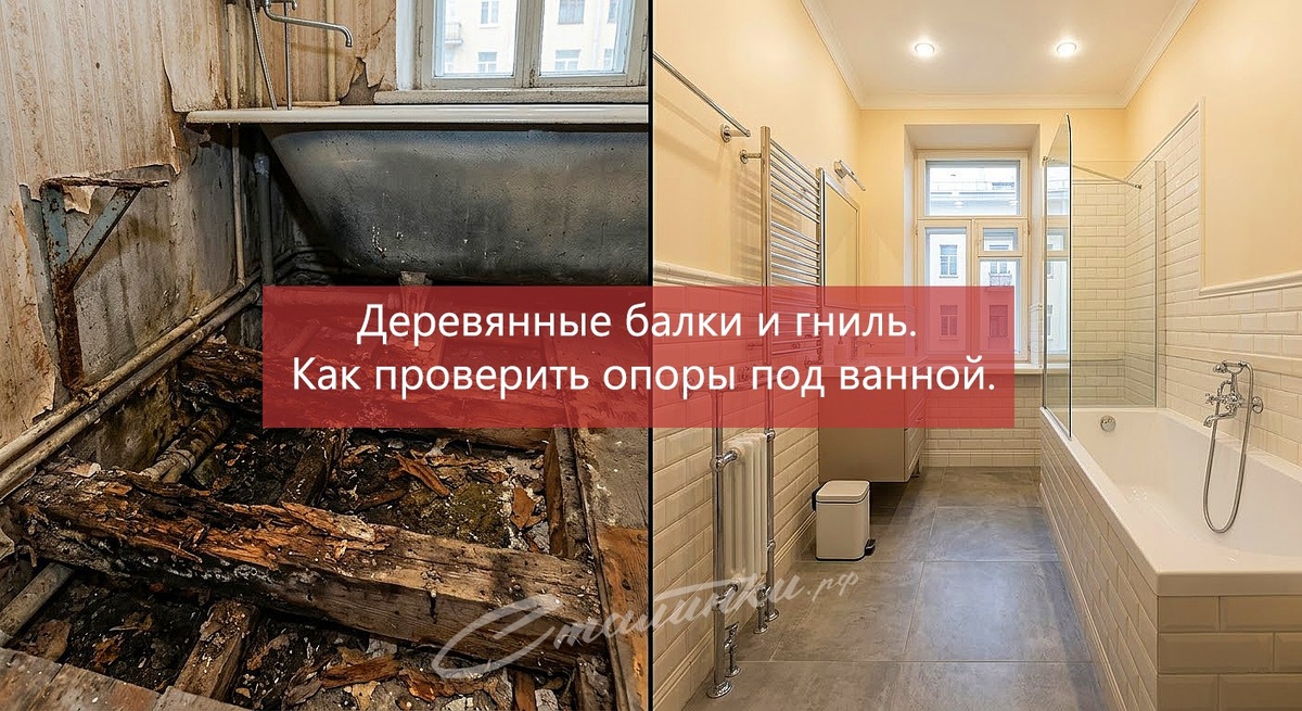 Сегодня разберем одну из самых "волнующих" тем при ремонте сталинки с деревянными или смешанными перекрытиями. Это гниль под ванной.