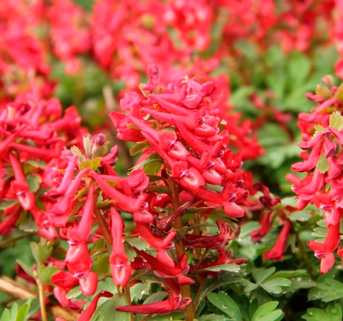 Corydalis lutea (Хохлатка желтая): Небольшое растение с ярко-желтыми цветами, часто используется для украшения каменистых садов и стен.