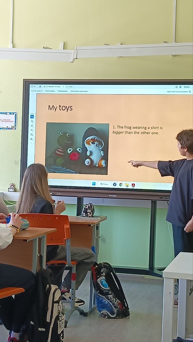 Я отошла от формата домашек, где детям нужно делать упражнения, и внедрила «живые» домашки! 🟡 В пятом классе ребята фотографировали объекты вокруг себя и сравнивали их с помощью "сравнительной степени прилагательных". 🟡 А в шестом девчонки опрашивали прохожих на улице об их настроении, и получилось очень классное видео! Посмотрим, как восьмой физический класс сделает задание с рецептами 😝 *на фото мой ученик сравнивает свои игрушки, получилось очень классно 😭