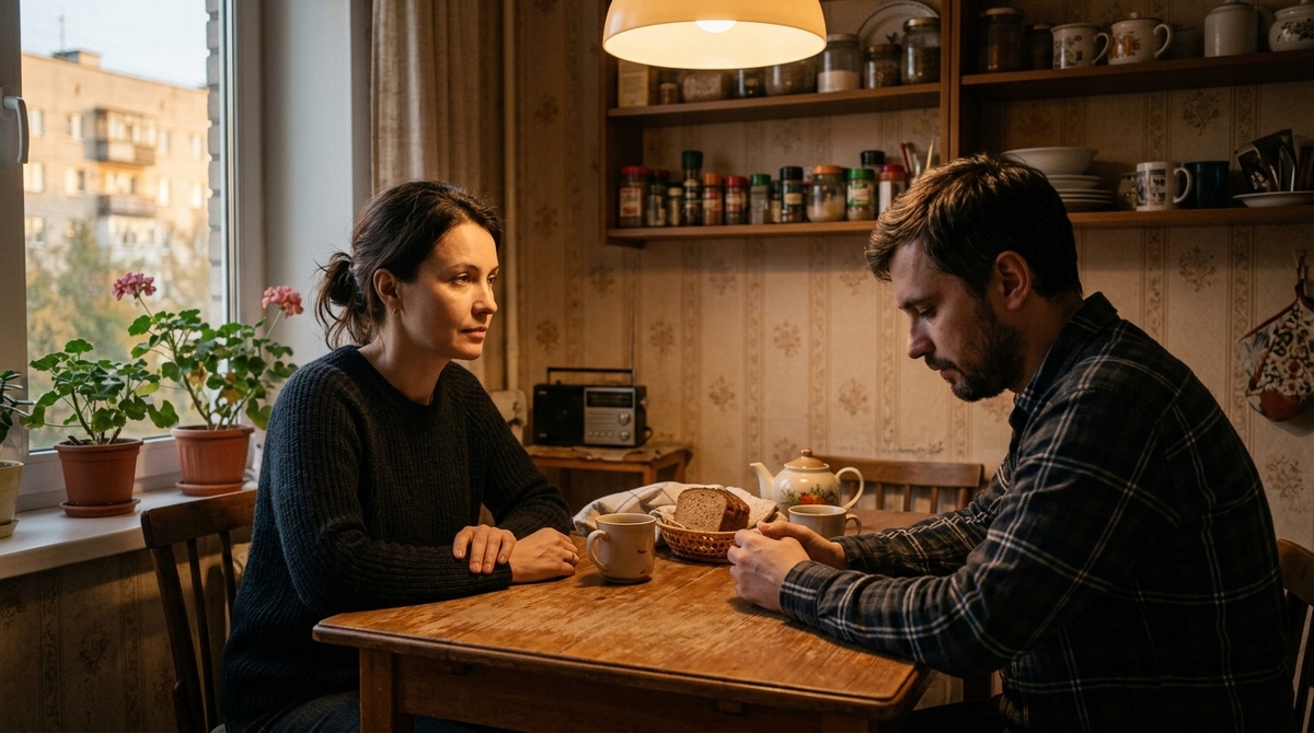 Они сидели на кухне поздним вечером. Она только вернулась с работы, ещё не успела снять пальто, а Павел уже стоял в дверном проёме с телефоном в руке и таким лицом, какое бывает у людей, которые давно придумали, что скажут, но ещё не решились.