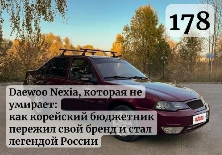 2026 год. На дорогах России — около 500 000 живых Nexia. Средний возраст — 18 лет. Средний пробег — 280 000 км.
