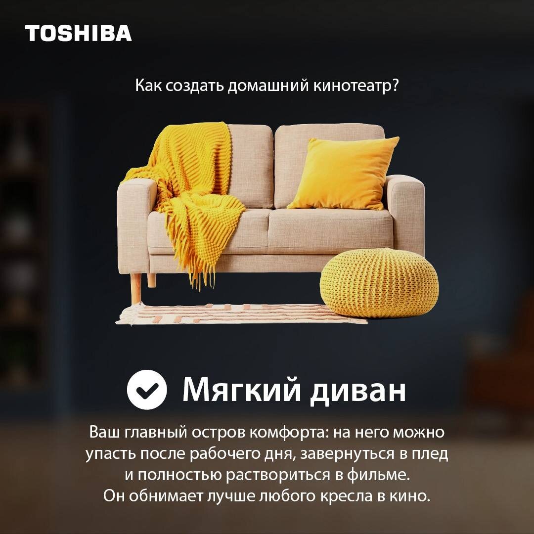 ? Тогда самое время превратить свою гостиную в домашний кинотеатр. Листайте карточки, в них мы собрали полную инструкцию, которая поможет создать идеальный домашний кинотеатр, в который хочется возвращаться снова и снова! Ловите нашу киноподборку для уютного киновечера 👇 «Дюна: Часть вторая» (2024) «Дэдпул и Росомаха» (2024) «Как приручить дракона» (2025) «Супермен» (2025) «Зверополис 2» (2025) Создайте свой домашний кинотеатр с телевизором Toshiba Z770RE 🍿✨ #ToshibaTV #Toshiba #телевизор @toshiba_russia