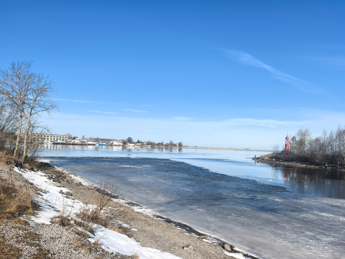 Приехали на наше излюбленное весеннее место к маякам. Тут Новоладожский канал вытекает из реки и несет свои воды в Сясь, а далее в Свирь.