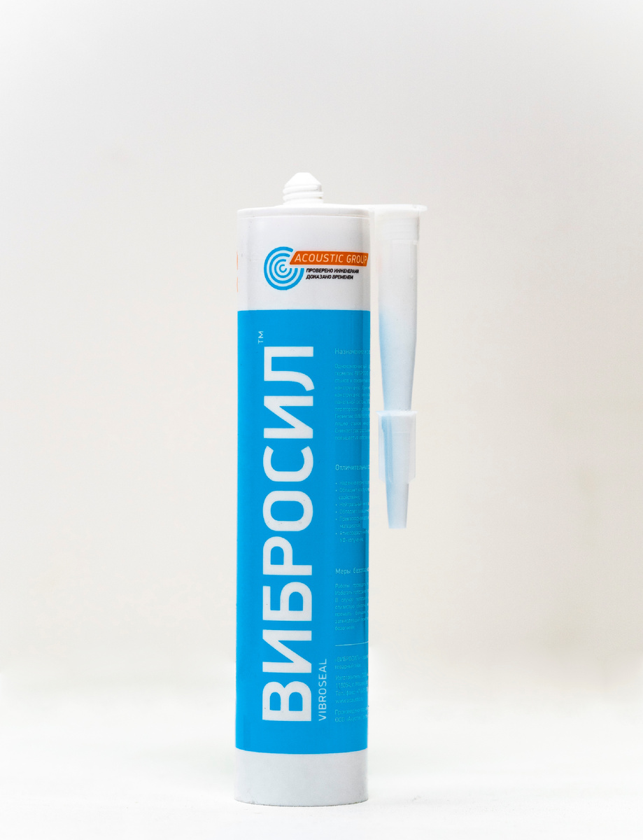Надёжная герметизация стыков — один из четырех слонов, на которых стоит звукоизоляция. Даже при использовании массивных панелей или многослойных систем, их эффективность резко снижается, если остаются щели и акустические мостики. Именно поэтому мы советуем использовать специальный виброакустический герметик. Его задача — сохранить герметичность соединения и снизить передачу вибраций между элементами конструкции, а секрет эффективности — в рецептуре. Вибросил — это качественный однокомпонентный силиконовый состав, сохраняющий стабильные свойства в течение многих лет. Он сохраняет эластичность в широком диапазоне температур, устойчив к влажности и совместим с большинством строительных материалов: минеральными основаниями, цементными смесями, стеклом и металлом. По сути, герметик в звукоизоляционной системе выполняет ту же роль, что и прокладки или виброразвязки: он устраняет акустические утечки и предотвращает образование жёстких соединений, поэтому к герметизации стоит относиться как