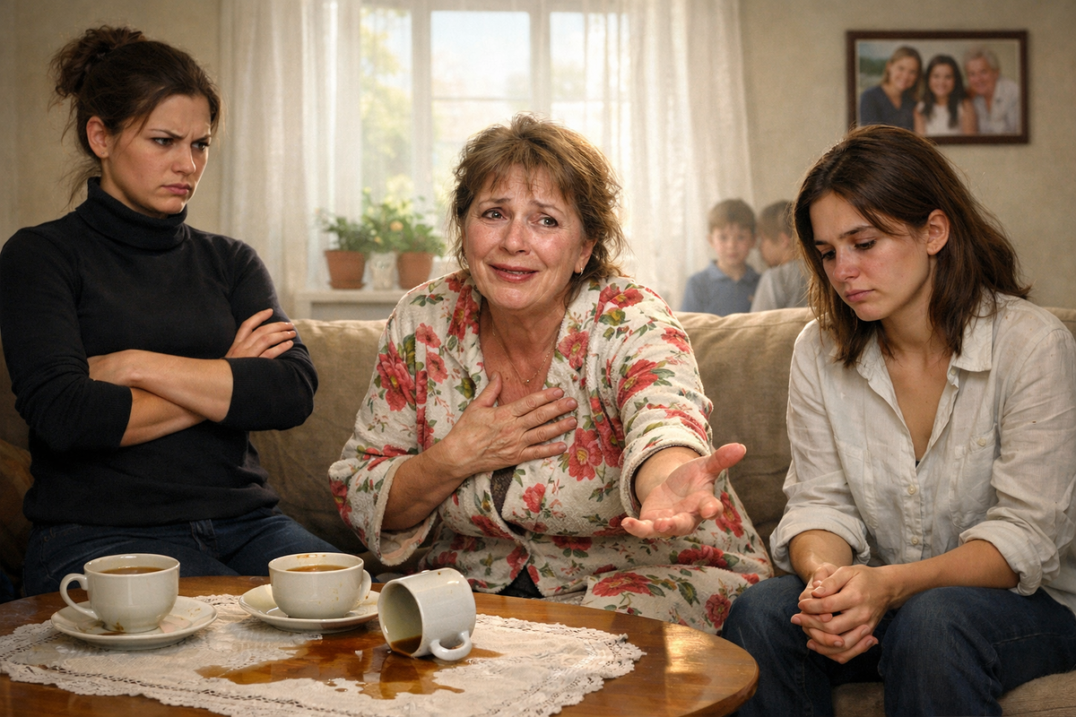 Катя замерла с чашкой чая на полпути ко рту. Телефон на громкой связи стоял на столе. В детской притихли Соня и Паша — они уже знали: после бабушкиных звонков мама долго сидит на кухне одна.