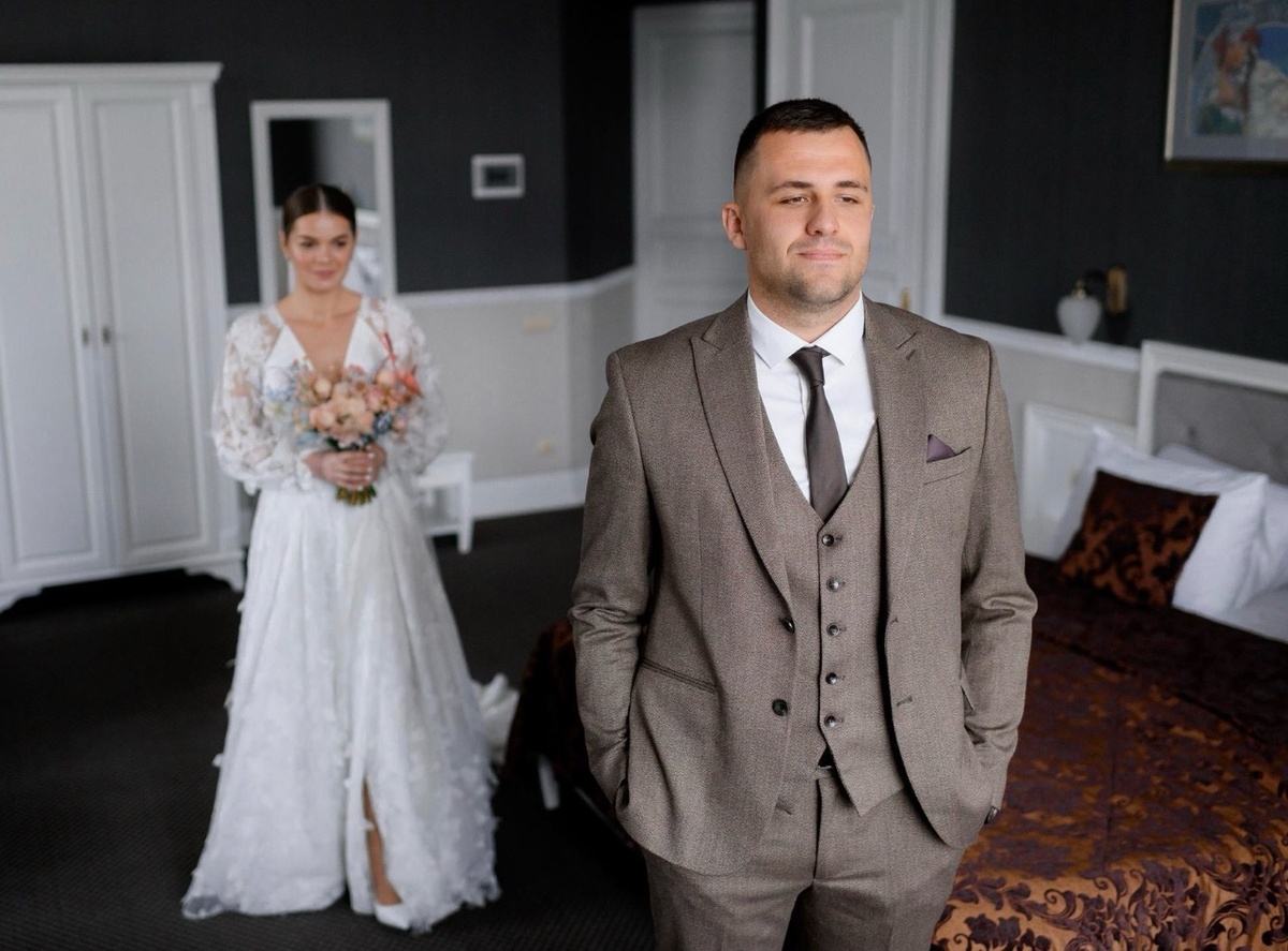 Подготовка к фотосессии — это всегда немного больше, чем просто выбор красивой одежды. Камера устроена иначе, чем человеческий взгляд: она замечает детали, усиливает контрасты и иногда «упрощает» то, что в жизни выглядит сложным и выразительным. Поэтому костюм для съёмки должен не только соответствовать вашему стилю, но и учитывать особенности света и оптики. Например, слишком гладкие или блестящие ткани могут давать блики от вспышек, из-за чего пиджак на фото теряет форму и выглядит плоским. Намного лучше работают матовые материалы с выраженной текстурой — они поглощают свет, сохраняют глубину цвета и делают образ более благородным в кадре. Цвет костюма на фотографии живёт своей жизнью. То, что кажется спокойным в зеркале, может выглядеть слишком ярко или, наоборот, потеряться на фоне. Универсальными считаются глубокие и насыщенные оттенки — тёмно-синий, графитовый, коричневый. Они хорошо контрастируют с кожей и позволяют камере «схватить» лицо, не отвлекаясь на лишние детали. С принт