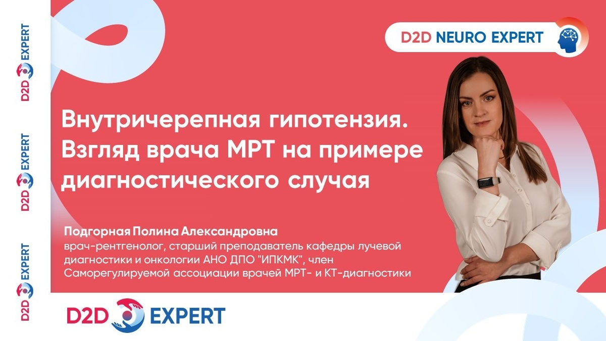 Подгорная Полина Александровна – врач-рентгенолог, старший преподаватель кафедры лучевой диагностики и онкологии АНО ДПО "ИПКМК", член Саморегулируемой ассоциации врачей МРТ- и КТ-диагностики Внутричерепная гипотензия – это патологическое состояние, характеризующееся снижением давления спинномозговой жидкости. Основной причиной внутричерепной гипотензии является ликворея, т. е. патологическое истечение ликвора. Внутричерепную гипотензию можно условно разделить на следующие категории: Наиболее частым и стойким клиническим симптомом при внутричерепной гипотензии выступают так называемые постуральные (ортостатические) головные боли: возникающие при вертикальном положении и исчезающие или значительно ослабевающие в положении лежа. В некоторых случаях головные боли развиваются постепенно в течение дня - «головные боли второй половины дня». Другие симптомы включают тошноту, рвоту, боль в шее, нарушения зрения и слуха, включая шум в ушах, и головокружение. Визуализационные методы исследовани