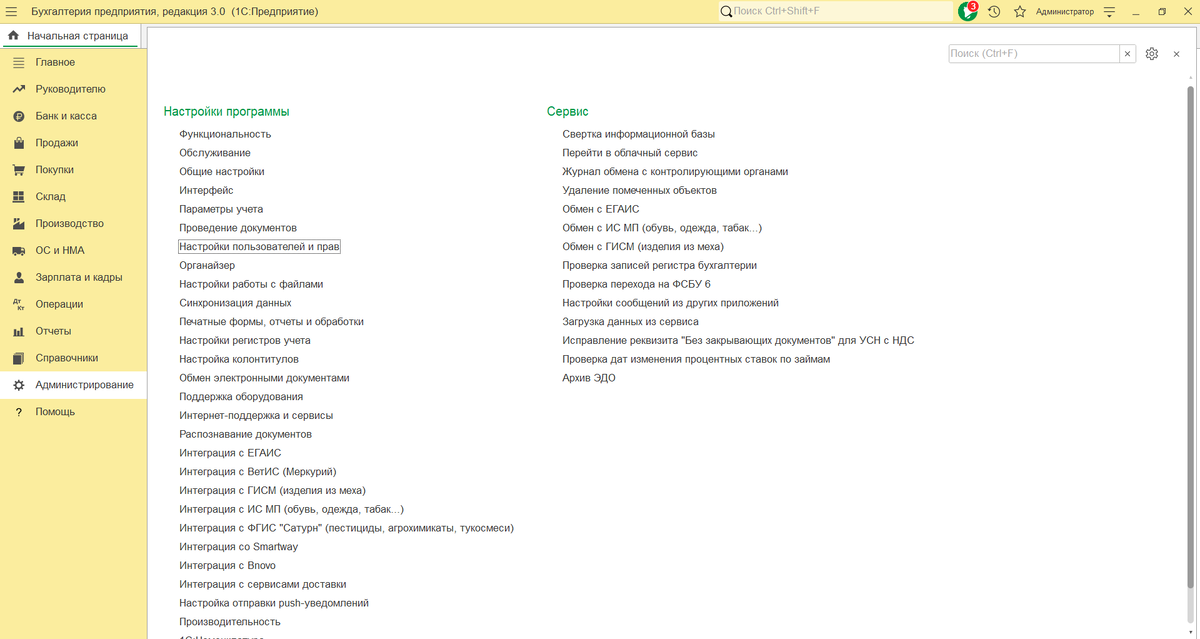 Итак, перейдите в раздел Администрирование-Настройки программы-Настройки пользователей и прав-Даты запрета изменения. Установите галочку "Даты запрета изменения" и нажмите Настроить для настройки.
