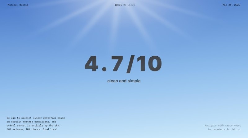 Нашли сайт, который оценивает потенциал КРАСОТЫ заката — просто вводите координаты и смотрите прогноз