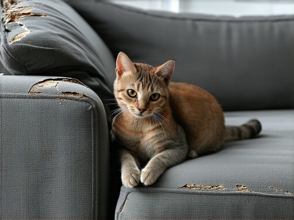 Подлетаешь, а кошка уже сидит у дивана с видом святой невинности. Лапу спрятала, хвостом лениво дернула, глаза увела куда-то вбок, будто ее тут вообще не было. А на углу обивки уже свежая бахрома. Новенькая. Пушистая. Прям улика на месте преступления. Ничего нового.