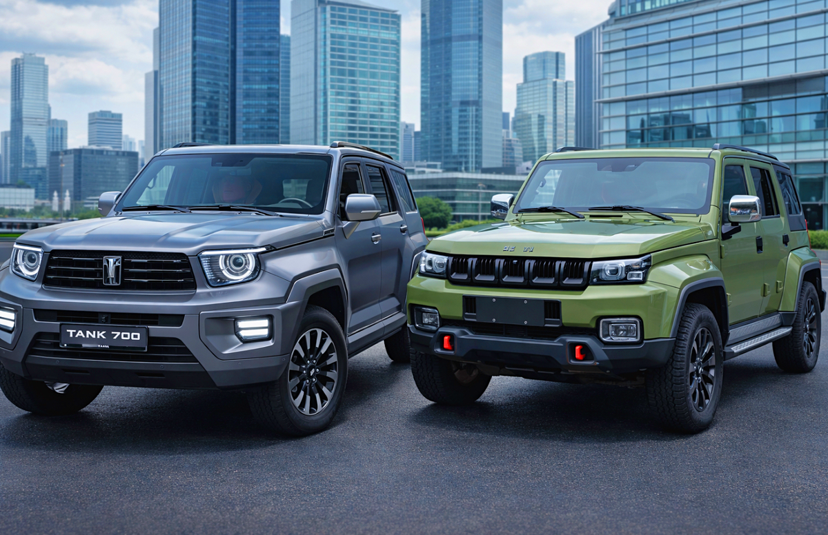 Теперь Tank 700 - и тут другая весовая категория. Бренд Tank входит в концерн Great Wall Motors, родственник Haval. У дизайнеров этой марки сложилась любопытная привычка: каждая следующая модель визуально отсылает к какому-нибудь классическому внедорожнику.