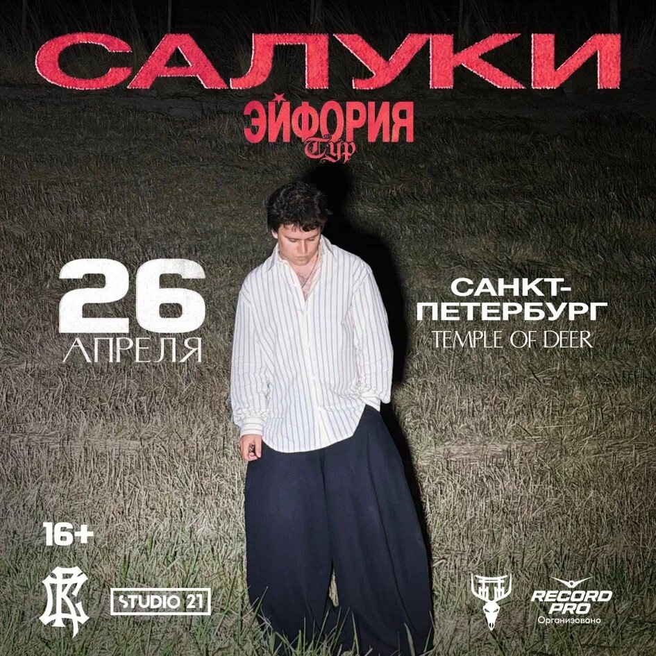 ⏰ 26 апреля в 19:00 Один из самых влиятельных артистов и саунд-продюсеров современной русскоязычной сцены. Его имя давно стало синонимом авторского подхода, в котором хип-хоп, альтернативная электроника и поп-музыка сливаются в уникальный звук. В творчестве SALUKI начинается новая глава. Альбом Эйфория — это следующий этап эволюции артиста. Новый звук, новая энергия и новая эстетика, которые SALUKI впервые покажет зрителям со сцены Temple of Deer. 💵 от 3400 ₽, купить билет 📍 Арсенальная наб., 1 Подпишись на Пойдем сегодня Петербург