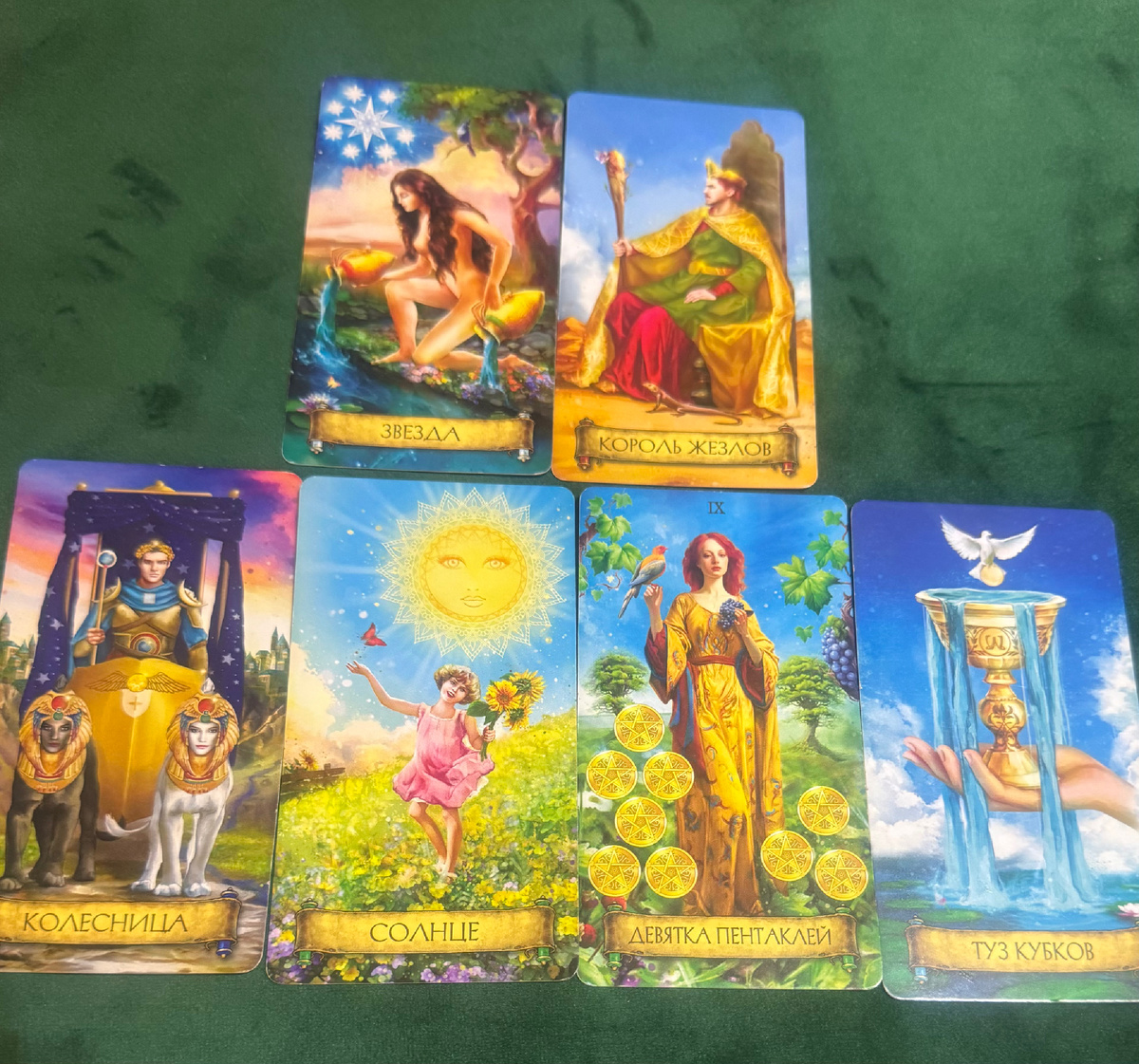 Я достаю из колоды первые две карты. Это Старший Аркан Звезда и Король Жезлов.