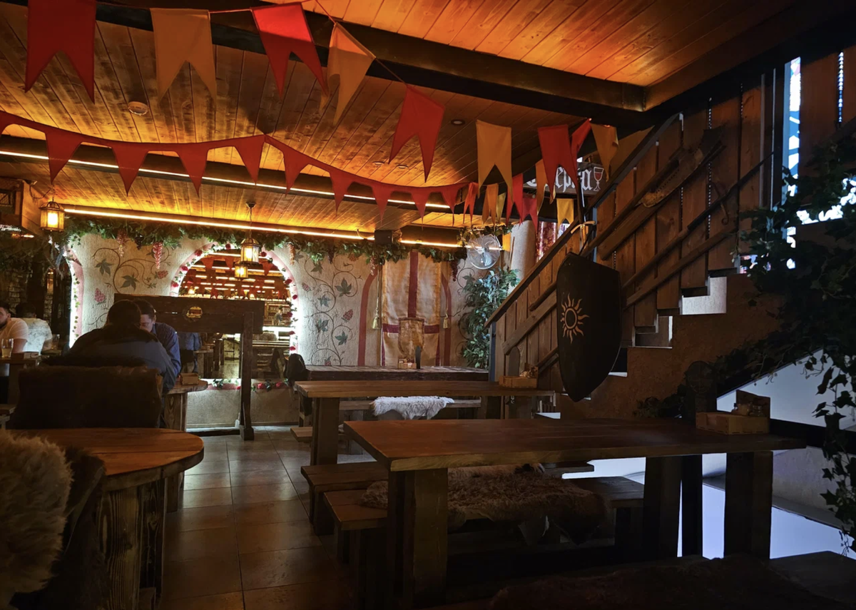 Признаюсь честно: когда мне впервые предложили написать об этом месте, я пожал плечами. Ещё одна тематическая таверна, подумал я. Ещё одна попытка заработать на фанатах. Банальная еда, мечи на стенах, официантки в платьях «а-ля средневековье» - всё это я видел десятки раз. И да, я ничего не знал о «Ведьмаке». Не читал книг, не играл в игры. Для меня Геральт был просто мускульным беловолосым мужиком, которого я пару раз видел в рилсах. Но любопытство - штука опасная. И вот я стою у входа в Камергерский переулок, 5/7. Спускаюсь по лестнице - и будто проваливаюсь в другую реальность. Приглушённый свет, чтобы из натурального дерева, свечи, знамена на стенах и огромный белый конь. Никакого пафоса. Никакой «клюквы». Это не выглядело как декорация - это выглядело как место, которое существовало всегда. Просто я о нём не знал. На входе меня встречает приветливая девушка, без лишней суеты. Объясняет, куда можно пройти и что сегодня будет какое-то мероприятие. И я захожу внутрь. И тут начинается