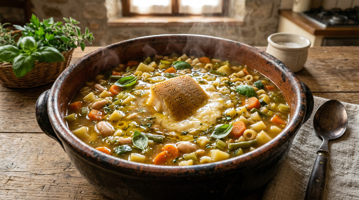 Было бы несправедливо не упомянуть, что корка пармезана хороша далеко не только в минестроне. Тот же приём работает практически с любым супом на водной или бульонной основе. Риболлита, тосканский хлебный суп, с коркой пармезана приобретает совершенно новое измерение. Обычный куриный бульон, в который бросили корку за двадцать минут до конца варки, становится богаче и интереснее. Фасолевый суп, чечевичная похлёбка, даже простейший суп из брокколи — везде корка пармезана делает своё дело.