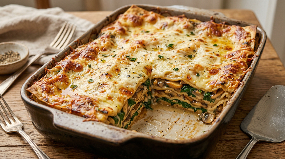 Рецепт ленивой лазаньи из лаваша с грибами и шпинатом