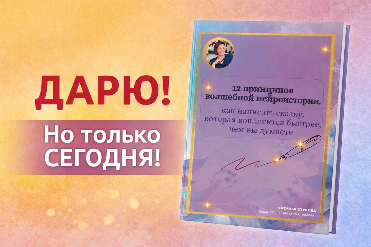 И, возможно, это именно Вы. Я приготовила ПОДАРОК: «12 принципов волшебной нейроистории: как написать сказку, которая воплотится быстрее, чем вы думаете». И это не просто «милый pdf-файлик на память». Это правда очень сильный, полезный и рабочий материал. Такой, который уж точно не отдают бесплатно. Потому что внутри там не вода, не красивые слова и не фантик. А очень понятные, живые, рабочие подсказки: – как написать сказку так, чтобы она действительно начала работать; – как помочь своему мозгу не сопротивляться мечте; – как приблизить желаемое не в теории, а в жизни; – как сделать так, чтобы ваша история не осталась просто текстом. И я дарю его самым быстрым, смелым и находчивым при оплате курса «Сказко-практикум „Сама себе фея“ сказ о Золотой Подкове и исполненных желаниях». ‼️ Завтра такого подарка уже не будет. Поэтому, девочки, поторопитесь. Если хотите не просто мечтать, а реально приблизить исполнение своей мечты, 👉 заходите в курс сейчас И подарок будет ваш.