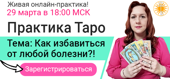 Здравствуйте, друзья! ❤️ Сегодня я хочу пригласить вас на очень важную живую практику, посвященную нашему здоровью. ❗️Гадание на здоровье всегда считалось одним из самых сложных. А мы с вами докажем, что это не так! Что получить подробный и понятный ответ от карт может каждый. 🗓 В воскресенье мы будем читать ваши расклады на очень важную тему: “Как избавиться от любой болезни?!” А также поговорим о том, можно ли избавиться от любой болезни и как это сделать. ➡️ Переходите по ссылке и сдавайте задание. На живом эфире мы встретимся 29 марта в 18:00 МСК. 🎁 А ещё в воскресенье мы разыграем мою колоду Таро “Магия Драконов“. Хотите получить ее в подарок? 🕔 У вас есть время сделать и сдать задание. Возможно именно ваш расклад мы разберем в это воскресенье! До встречи в эфире! 🌞 УЧАСТВУЮ В ПРАКТИКЕ