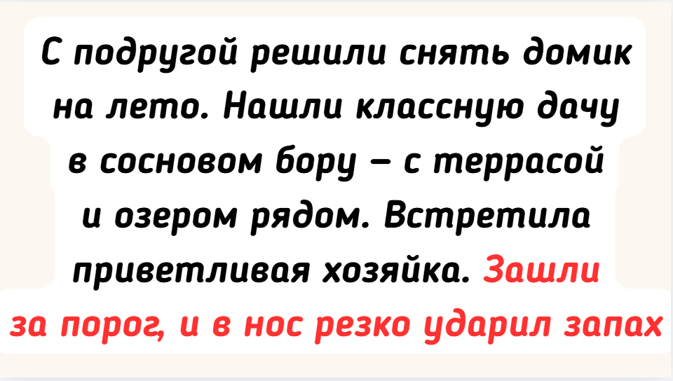- С подругой решили снять домик на лето. Нашли классную дачу в сосновом бору — с террасой и озером рядом. Встретила приветливая хозяйка. Зашли за порог, и в нос резко ударил запах лаванды, аж защипало. Хозяйка сказала, что это от моли. Задаток мы внесли, но я всю ночь не спала — прям чувствовала: что-то не так, надо валить. Утром позвонила и отказалась. А через неделю узнаю от соседей, с которыми успела познакомиться, очень интересные подробности об этом доме. Оказывается, дом как-то затопило после сильного ливня, и под полом разрослась черная плесень. Хозяйка, конечно, знала, но пыталась лавандой перебить запах сырости — лишь бы поскорее сдать. Даже не представляю, с какими проблемами пришлось бы столкнуться, сними мы этот дом на все лето.