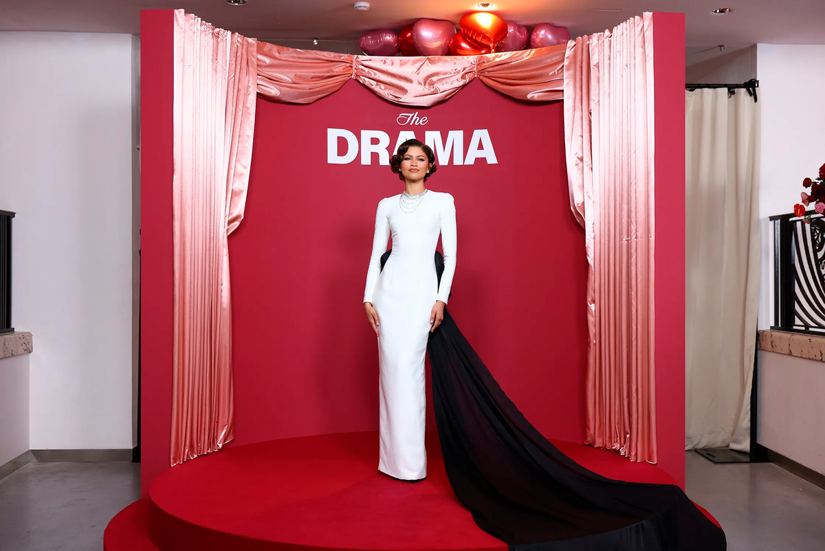 В Париже Зендея продолжила свою необычную «свадебную» модную кампанию — на этот раз в рамках промо фильма «Драма», где она играет вместе с Робертом Паттинсоном. Картина выйдет уже 3 апреля, но обсуждают сейчас не столько сюжет, сколько гардероб актрисы. На красной дорожке звезда появилась в белом платье от Louis Vuitton — лаконичном спереди, но с эффектным сюрпризом сзади. Открытая спина, высокий разрез и гигантский бант, переходящий в длинный шлейф, сделали образ максимально драматичным. В сочетании с бриллиантами David Morris весь лук выглядел как модная интерпретация фигурки на свадебном торте — в самом стильном смысле этого слова. Зендея с Робертом Паттинсоном в рамках промо фильма «Драма» в Париже, 2026 Зендея в рамках промо фильма «Драма» в Париже, 2026 Этот выход стал продолжением продуманной стратегии: последние недели Зендея практически не снимает белое, обыгрывая свадебную тему фильма. В ход уже шли архивные образы, включая платье Vivienne Westwood, в котором она появлялась н