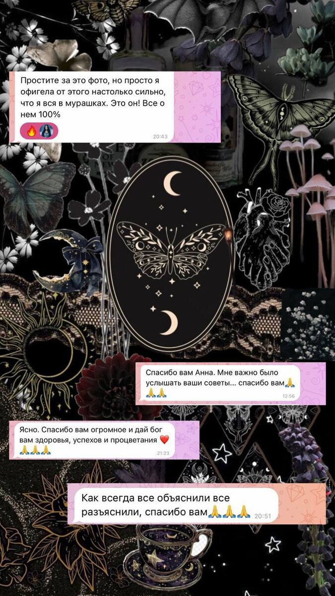 Хочу от всего сердца поблагодарить своих замечательных девочек - феечек за тёплые, искренние слова. Это не просто похвала, а мощный стимул двигаться вперёд, творить с ещё большей отдачей и делать мир чуточку лучше для вас. С огромной любовью в сердце к вам!!! Бескрайне ваша, Анна Люмир. Личная связь: ВСЕ ВИДЫ ПРИВОРОТОВ, ОТВОРОТОВ, ОБРЯДОВ, ЕГИЛЬЕТОВ, ТАРО, ОРАКУЛ ДИАГНОСТИКА ОТНОШЕНИЙ: Теlegram:+79934717973, t.me/Anna_Lyumir МАХ: +79934717973, max.ru/...ndy Я здесь, чтобы выслушать вас и помочь. Вместе – мы сила! Попробуйте провести авторские магические медитации, которые созданы мной лично на ваше спокойствие и счастье, с благословением предков. Прикоснитесь к моей силе : Добро пожаловать в мой ведьминский магазин на OZON с работающими магическими наборами заговоренных свечей на любовь и красоту, от лишнего веса и на избавление от соперницы. Мой телеграмм-канал Скорой Магической Помощи: https://t.me/annalyumir Дзен: https://dzen.ru/annalyumir Youtube-канал: https://www.youtube.com/@A