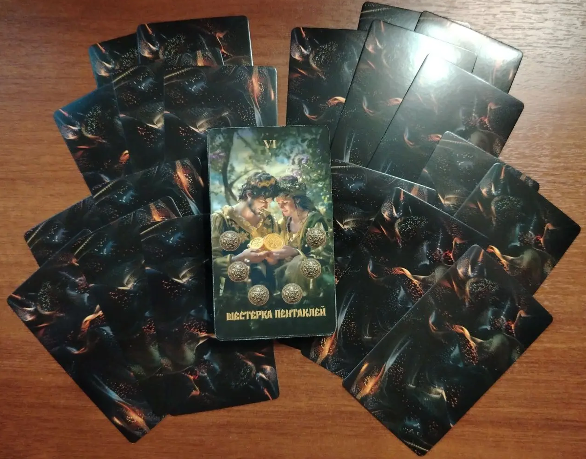 Давайте посмотрим, что ждать от партнера, какие мысли занимают его голову, что планирует и что будет делать в Ваших с ним отношениях. На дней колоды шестерка пентаклей, что в общем говорит о том, что фоном Ваших отношений является некая взаимность. Что вы даете друг другу в отношениях, то и получаете. В большинстве случаев, этот обмен неравноценный, но в данной колоде мы видим, что пара достаточно тепло и щедро предлагает друг другу то, что у каждого есть. Так что если у партнера сейчас выявим какой-то негатив, то в первую очередь постарайтесь понять, а что Вы такого ему не додаете или каким-то еще образом привносите тот негатив, который зеркалит и возвращает Вам Ваш партнер. О чем думает Ваш партнер? Мечутся мысли его, как испуганные кролики в клетке. И причина всей этой сумятицы в том, что коренным образом меняются его изначальные ценности, которые в нем взращивали, которым он следовал, которые были приняты им и его окружением. А тут как будто яркие софиты вдруг озаряют различные сфе