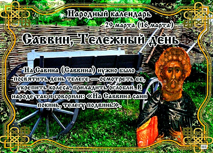 В воскресенье 29 марта 2026 года судят о весне. В народном месяцеслове дата получила название Саввин, или тележный день.