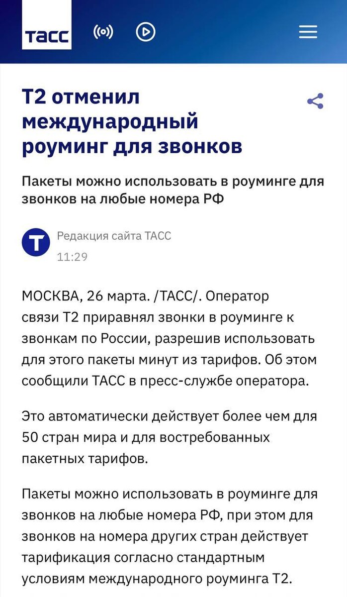 Т2 первая на отечественном рынке приравнял звонки в РФ из роуминга к домашним тарифам. Теперь минуты за звонок из-за границы списываются из стандартного пакета, никаких доплат за роуминг. В отпуск теперь можно лететь, не боясь потратить все деньги на звонках 👏 CtrlAltDelights- подписаться