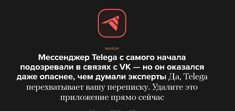 Эксперты проверяли, есть ли в альтернативных клиентах скрытые механизмы для слежки за пользователями и передают ли они данные на инфраструктуру, доступ к которой есть у российских силовиков. Исследование подтвердило, что Telega собирает аналитику более чем по 30 событиям через MyTracker, а звонки маршрутизируются через инфраструктуру «Одноклассников» — оба сервиса принадлежат VK.