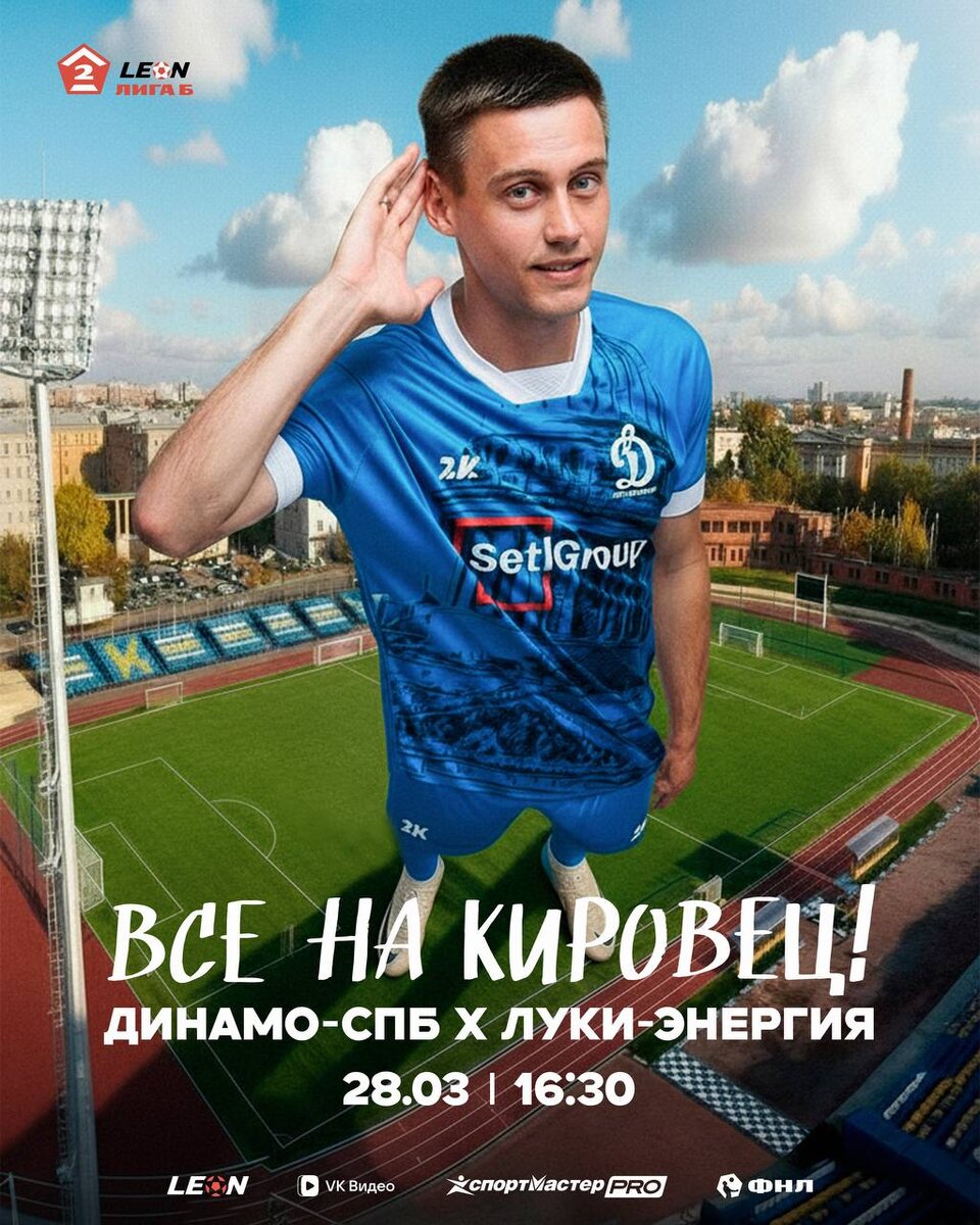 ! ⚪️🔵 В субботу, 28 марта, «Динамо» откроет футбольный сезон LEON-Второй Лиги Б Первым соперником санкт-петербургского коллектива станет клуб «Луки-Энергия» из города Великие Луки. Матч пройдёт на стадионе «Кировец» и начнётся в 16:30. Петербургское «Динамо» открывает футбольный сезон-2026 матчем на легендарном стадионе «Кировец» (ул. Перекопская, 6-8). В гости к бело-голубым пожалует клуб «Луки-Энергия» из города Великие Луки. Прошлый сезон великолукская команда завершила на 12-й строчке турнирной таблицы второй группы. Динамовцам, в свою очередь, не хватило двух очков до повышения в классе — они остановились на третьем месте в группе под номером 3. В новом сезоне команда Александра Фомичёва вернулась во вторую группу, укрепила состав и готова вновь бороться за чемпионство. Матч пройдёт на стадионе «Кировец» — том самом, где в конце прошлого года бело-голубые провели два блестящих поединка, обыграв тамбовский «Спартак» (7:0) и «Знамя Труда» из Орехова-Зуева (3:0). Интересные фа