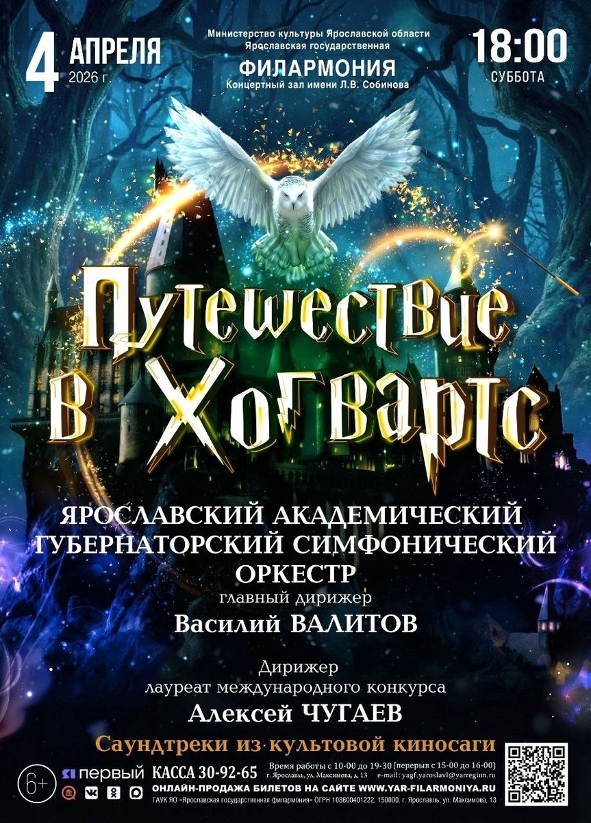 4 апреля 2026 года Концертный зал им. Л. В. Собинова превратится в Школу чародейства и волшебства. Ярославский академический губернаторский симфонический оркестр под управлением главного дирижера Василия Валитова подарит слушателям настоящее «Путешествие в Хогвартс». За дирижёрским пультом — Алексей Чугаев. В программе — легендарные саундтреки, переносящие нас в мир Хогвартса, Квиддича и Тайной комнаты... Но это не просто концерт: любимые мелодии будут звучать вместе с отрывками из культовых фильмов о Мальчике, который выжил. Помните, как впервые увидели Хогвартс? Напомните себе о волшебстве под саундтреки в исполнении ЯАГСО! 🎫 Билеты в продаже. Приходите за своей порцией «магии»: https://quicktickets.ru/yaroslavl-filarmoniya/s439 . . . #ХогвартсВЯрославле #ГарриПоттер #СимфоническийОркестр #Концерт #Ярославль #Филармония #Саундтреки #ПутешествиеВХогвартс #МузыкаКино Источник: https://vk.ru/wall-41459648_12596