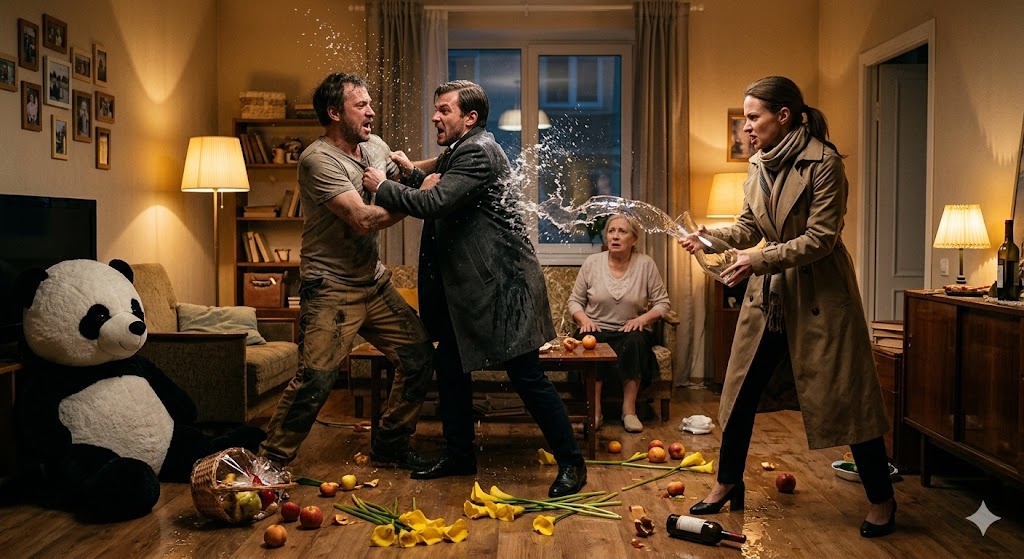 Мы сели за стол. Артур разлил вино, сыпал комплиментами, но напряжение в воздухе висело топором. Только мама открыла рот, чтобы спросить, откуда взялся этот кавалер, как раздался звонок в дверь.