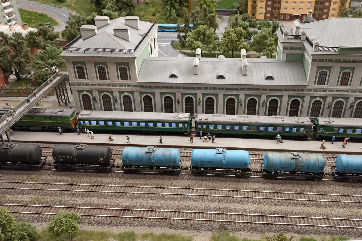 Копии российских пассажирских и грузовых поездов ездят по разным маршрутам, перемещаясь с одного пути на другой с помощью стрелочных переводов. Любители железных дорог оценят многообразие моделей: в числе прочих здесь можно найти одноэтажные и двухэтажные пассажирские вагоны, полувагоны, цистерны, платформы с контейнерами и другие грузовые вагоны, электрички, высокоскоростные поезда, а также технические составы.
