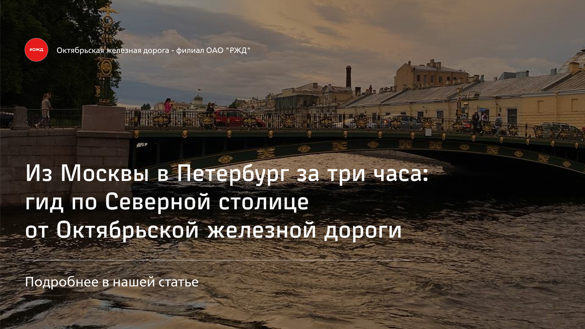 Добро пожаловать в Санкт-Петербург — город, который не надо представлять. Его знают все. Но знать и чувствовать — разные вещи. Путешествие сюда по стальным путям Октябрьской магистрали начинается задолго до прибытия: за окном «Сапсана» мелькают уютные подмосковные городки, старинные усадьбы, бескрайние леса и зеркала рек. А через три часа вы уже выходите на Московском вокзале.