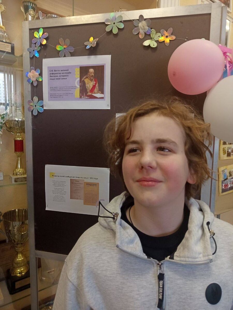 💥 Семиклассник Григорий из «С» класса стал призёром в номинации «Личность в истории» на метапредметной олимпиаде с проектом о своём родственнике — первом председателе Совета министров Российской империи Сергее Юльевиче Витте. 🇷🇺 Подготовка проекта проходила под руководством учителя истории и советника директора учебного корпуса 1 Владислава Павловича Лебедева в рамках объединения Первых «Хранители истории». 💭 О том, как это было, рассказывает Владислав Павлович: «На одном из первых занятий «Хранителей» мы изучали генеалогию и историю своих семей, так как в рамках Первых и Московского центра воспитательных практик есть проекты схожей тематики. Когда Григорий сообщил мне, что у него есть родственник — Сергей Юльевич, я, как историк, сначала не поверил. Однако мы сели за изучение материалов, сохранившихся в его семье, и начали поднимать архивы. Поиск занял около месяца. В ходе исследования мы обнаружили около 400 человек, начиная с XVII века, из различных областей России, а также