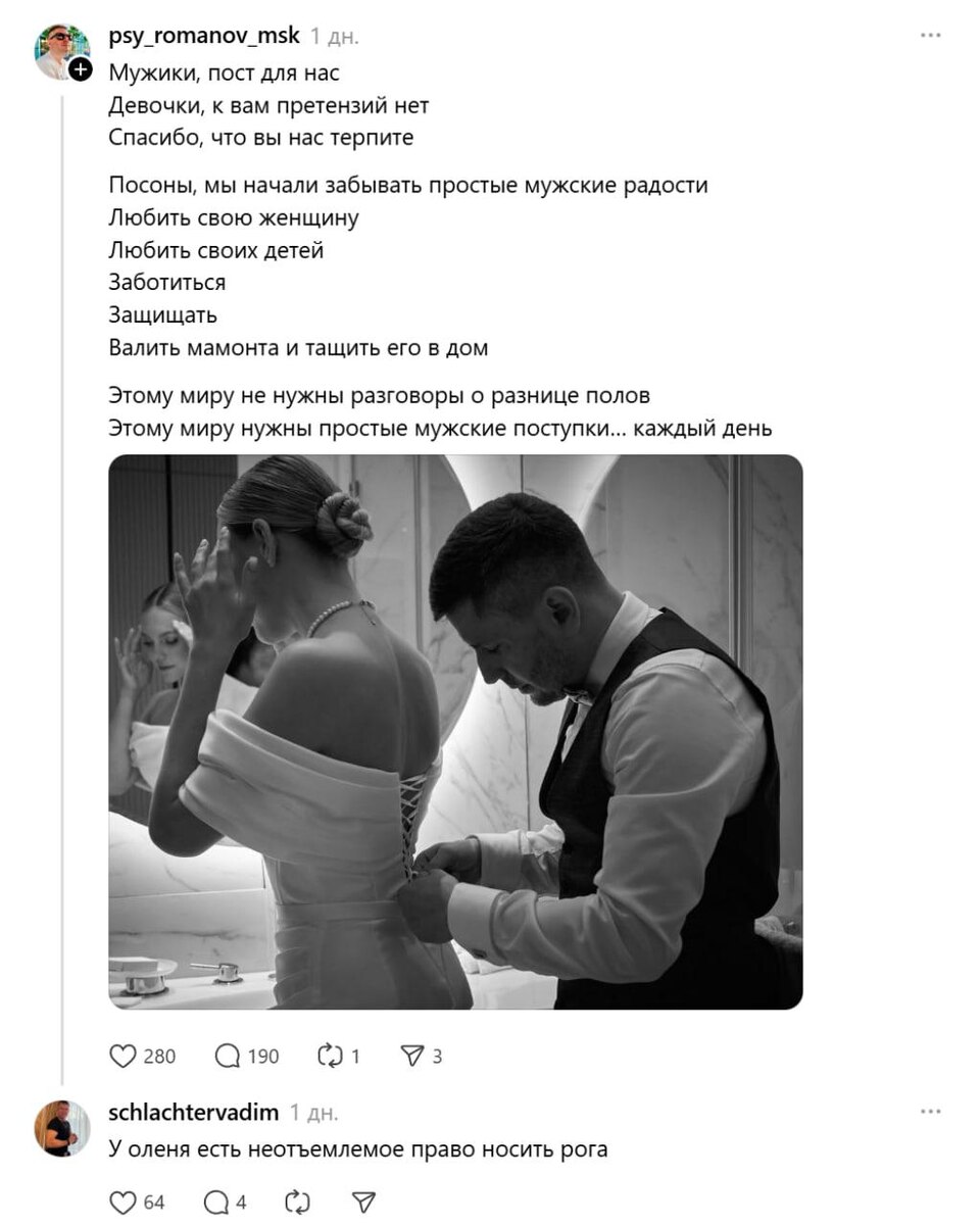 Когда мужчина начинает жить только ради женщины, у него обычно очень быстро вырастают рога. 😄