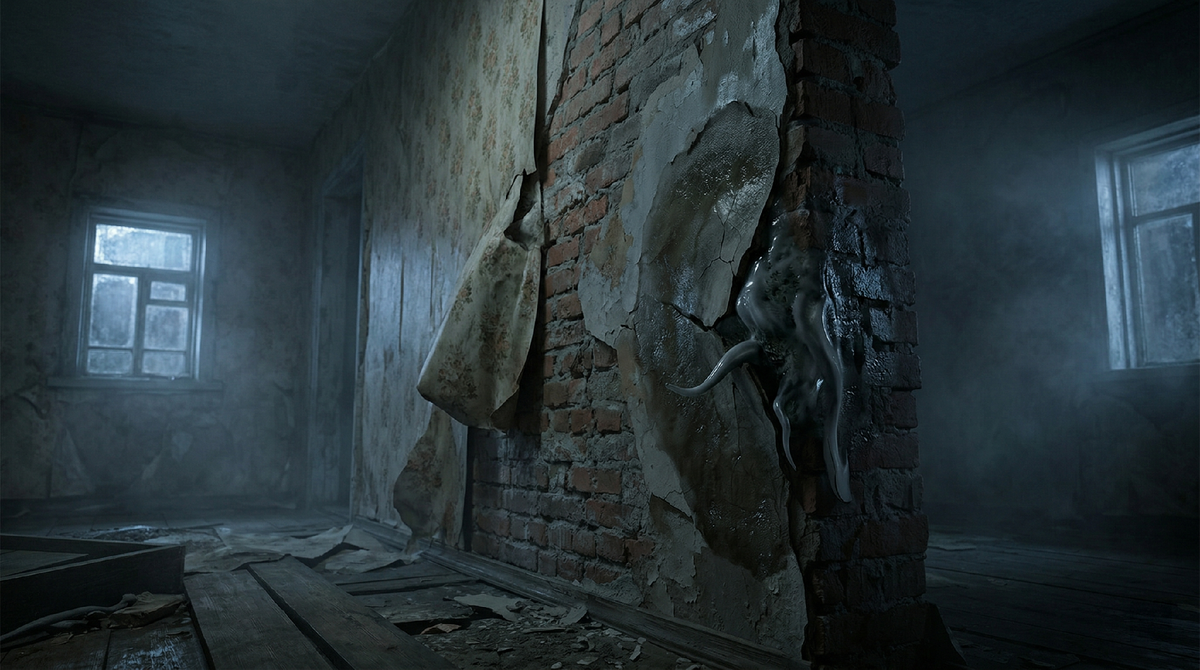 Штукатурка над плинтусом вздулась за одну ночь. Известка пошла крупными, сухими пузырями, из-под которых потянуло запахом старого мела и застоявшейся воды. Из-за стены, где за тонкой кирпичной перегородкой находилась пустая соседская половина дома, донесся звук. Глухой, влажный толчок, будто к кладке привалили тяжелый мешок с мокрым песком. — Отдай... — провибрировало сквозь кирпичи. Голос не имел связок. Это был резонанс пустой коробки, в которую под давлением нагнетают воздух. Сосед не пережил февральских морозов, но мартовская оттепель превратила почву в вязкий сифон, который начал выдавливать всё зарытое обратно к поверхности. Всю зиму я жил за его счет. Я жег его запас березовых дров, когда мои поленья превратились в лед. Я сливал керосин из его канистры, чтобы моя лампа не гасла долгими ночами. Я выкачивал его ресурс, создавая вокруг себя зону тепла за счет чужой убыли. Теперь вакуум за стеной требовал возврата. Я почувствовал, как воздух в комнате стал густым и неподвижным. Темп