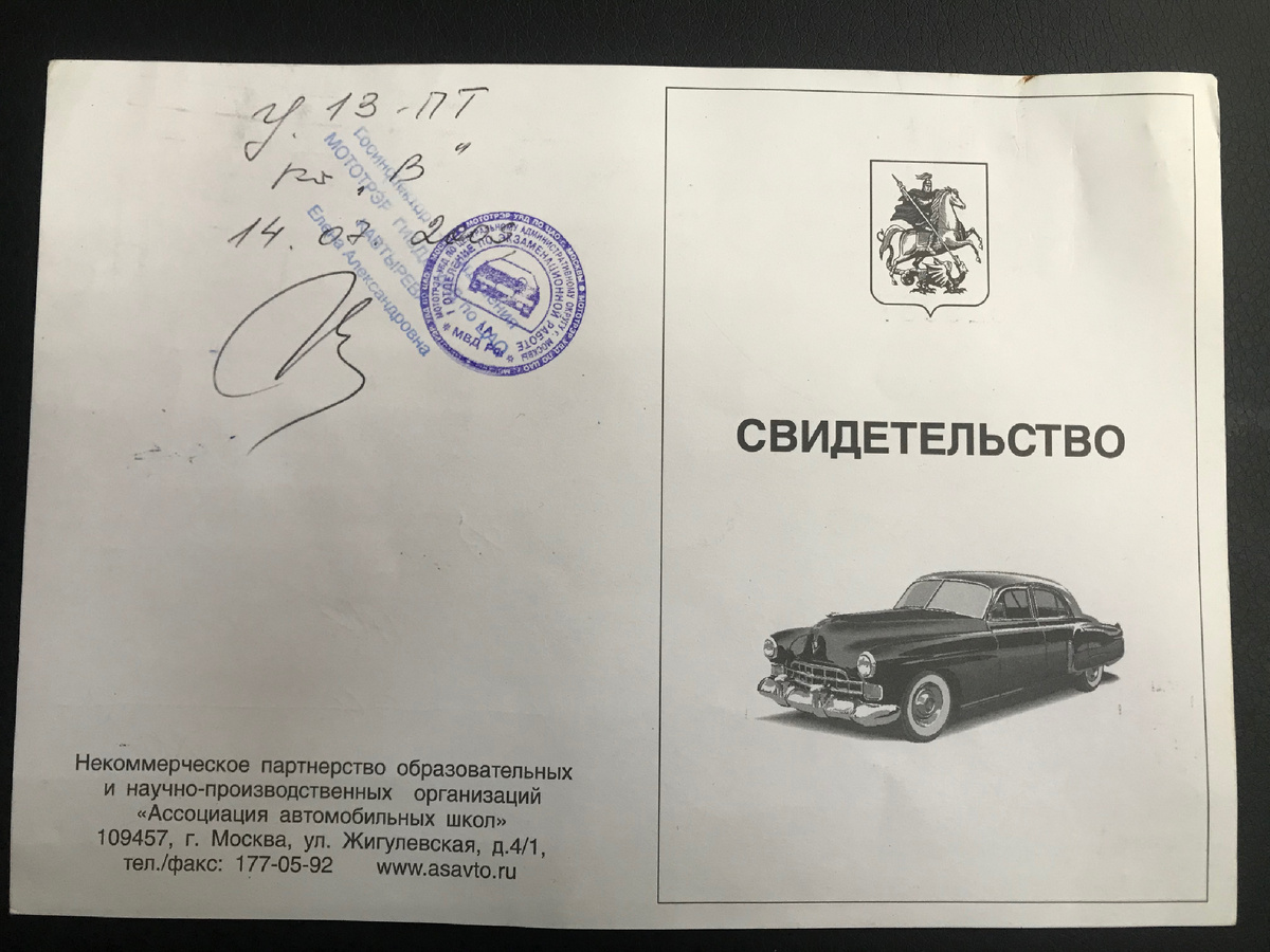«где закончили автошколу? В Москве? Права получали?»
