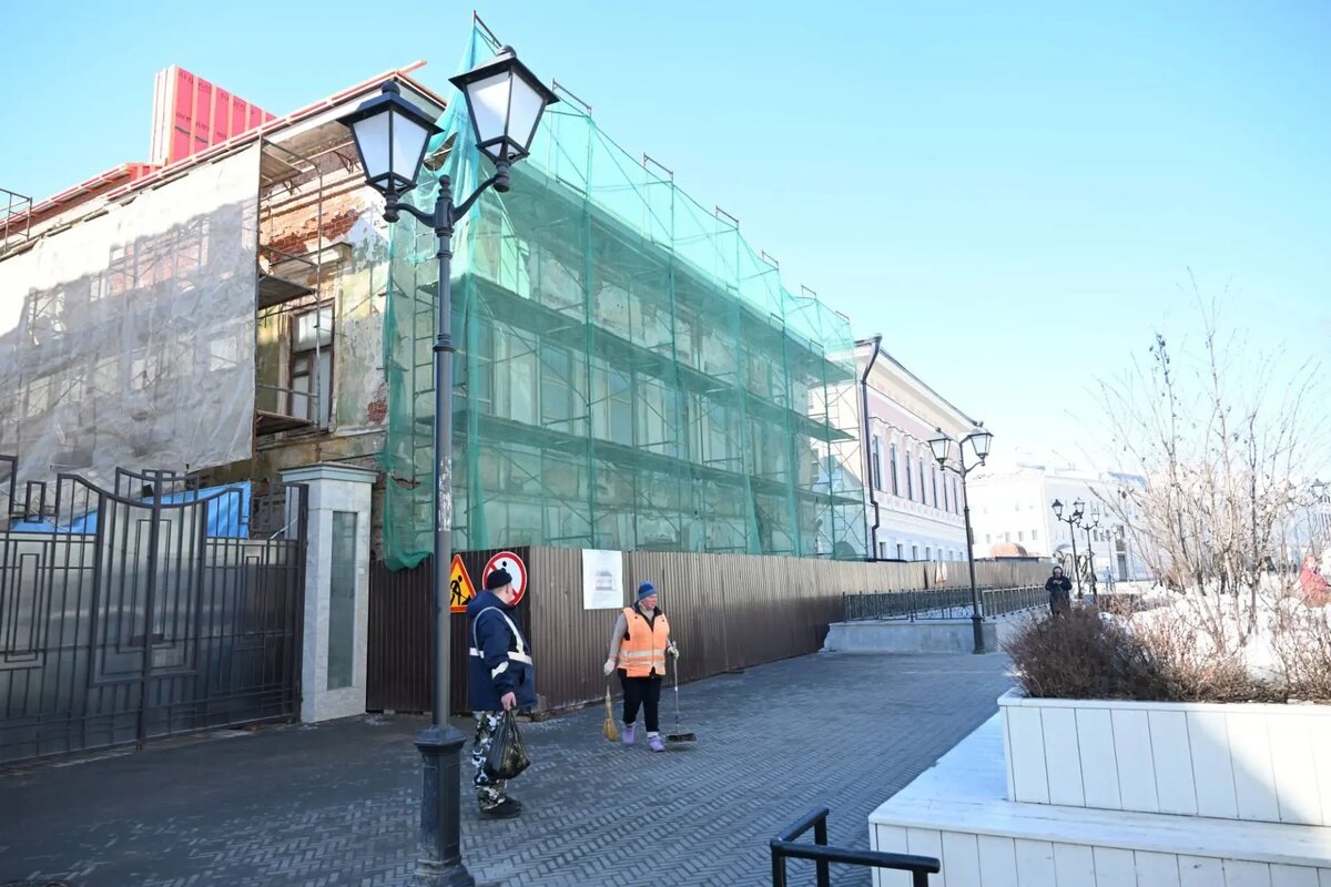 Реставрационные работы на объектах проводятся одновременно. На данный момент дом № 32 готов на 90%, его планируют сдать до конца 2026 года, в то время как во втором здании продолжается замена кровли. Проекты восстановления согласованы с Комитетом Татарстана по охране объектов культурного наследия.