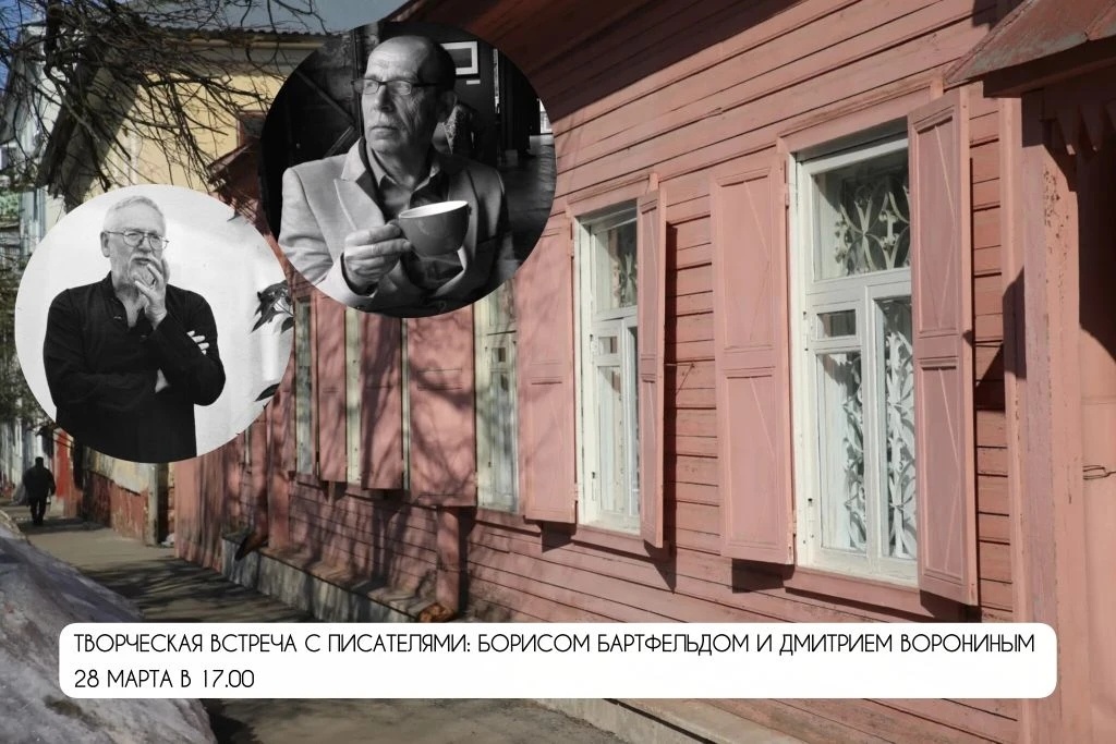 В субботу, 28 марта, в 17:00 в Доме-музее В.В. Вересаева состоится творческая встреча с калининградскими писателями Борисом Бартфельдом и Дмитрием Ворониным. Гости познакомят туляков со своим творчеством и расскажут о современном литературном процессе в России. Борис Бартфельд — автор 19 книг, среди которых 8 поэтических сборников, переведённых на многие иностранные языки. Он является организатором одного из крупнейших в стране конкурса-фестиваля «Русский Гофман» и автором историко-культурологических гостиничных проектов «Альбертина» и «Дом сказочника». Дмитрий Воронин — автор трёх сборников рассказов, его публикации выходили в 45 литературных журналах России и ближнего зарубежья. Воронин также входит в число организаторов фестиваля «Русский Гофман». Вход на встречу свободный. Возрастное ограничение: 12+.