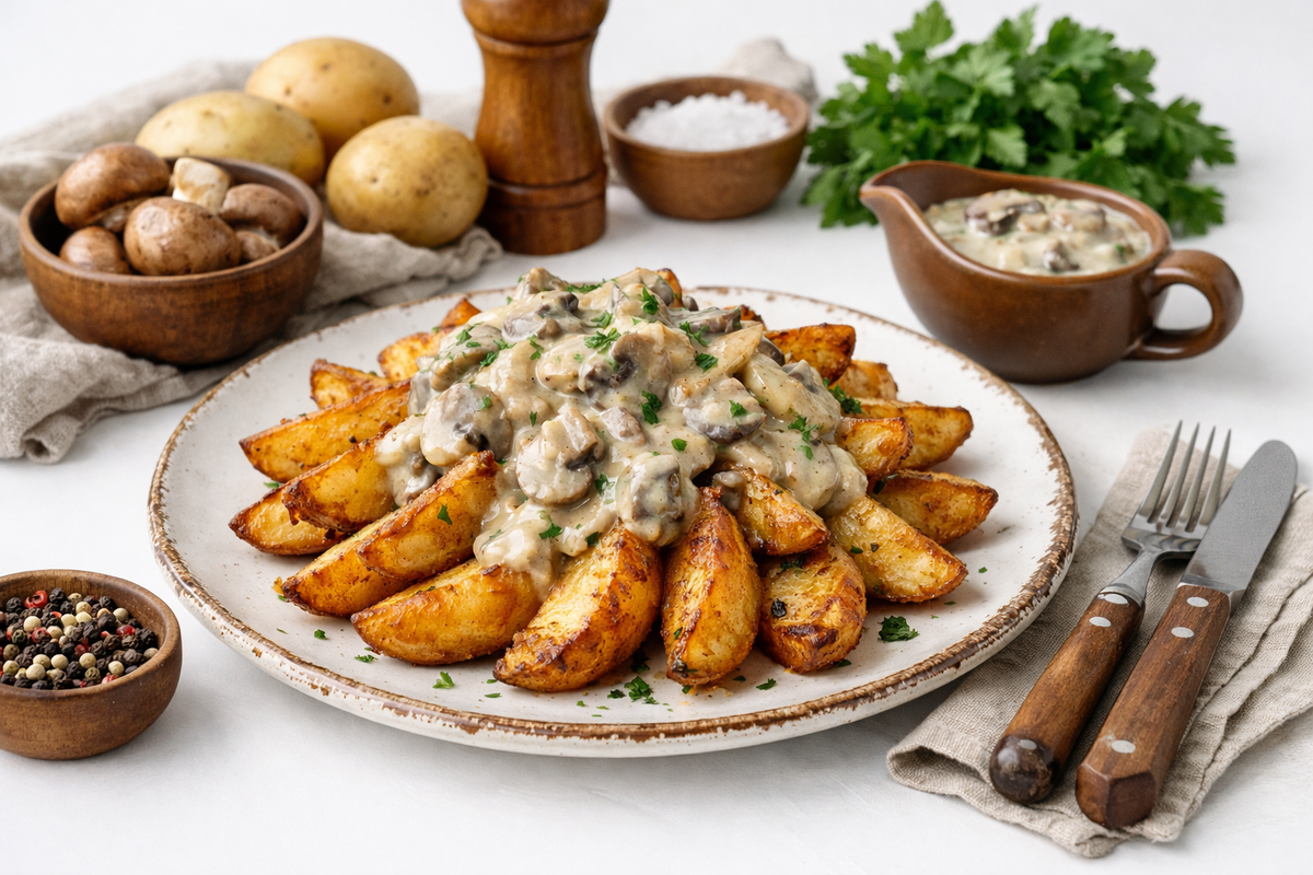 Иногда самые вкусные ужины рождаются не из редких продуктов, а из того, что уже есть под рукой. Обычный картофель, немного грибов, лук, сметана - и на столе появляется горячее, ароматное, очень домашнее блюдо с той самой подливой, которую хочется собирать кусочком хлеба до последней ложки. Такой картофель по-деревенски хорош и в будни, и в выходной, когда хочется поесть с удовольствием, без